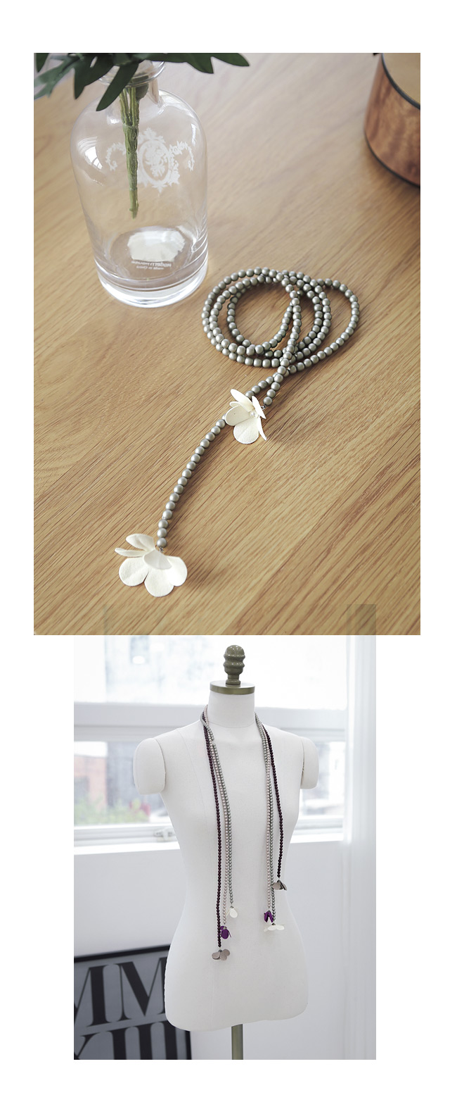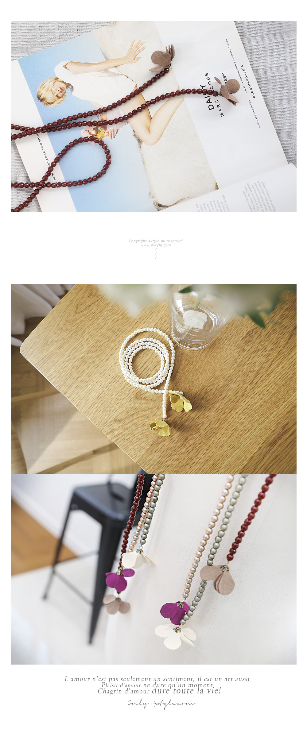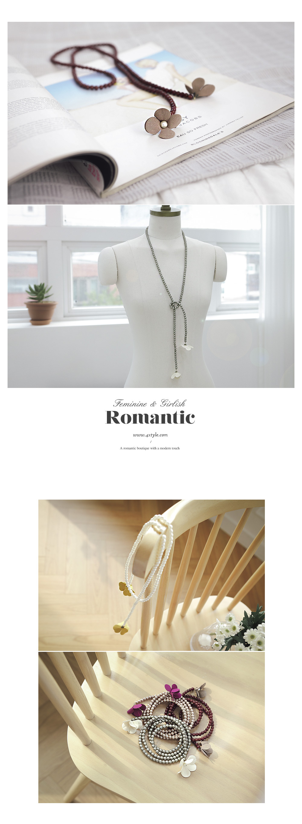 우아한 진주와 러블리한 플라워 장식이 매력적인 롱목걸이 입니다.