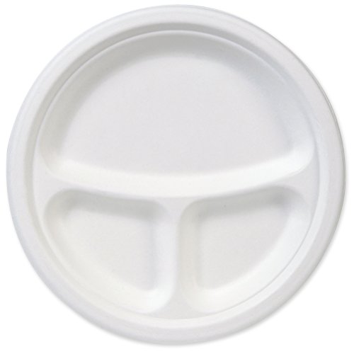 - Disposable paper plate is made of heat-molded fiber, divided into three compartments, and suitable for entrees and other dishes