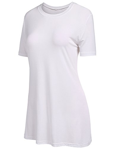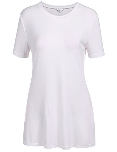 Soteer Women Casual Solid Slim Fitted Tshirt Short Sleeve Basic Top Tee White L