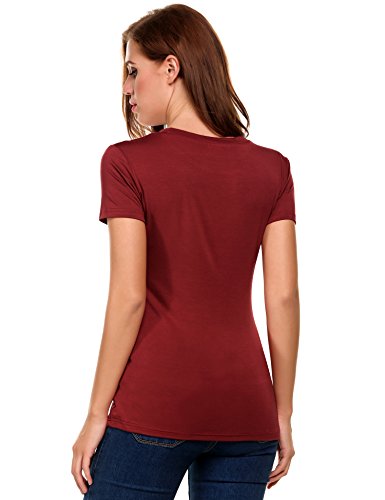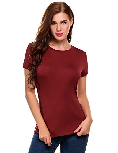 Soteer Women Casual Solid Slim Fitted Tshirt Short Sleeve Basic Top Tee Wine Red L