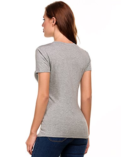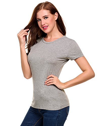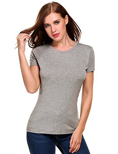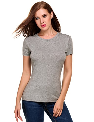 Soteer Women Casual Solid Slim Fitted Tshirt Short Sleeve Basic Top Tee Grey M