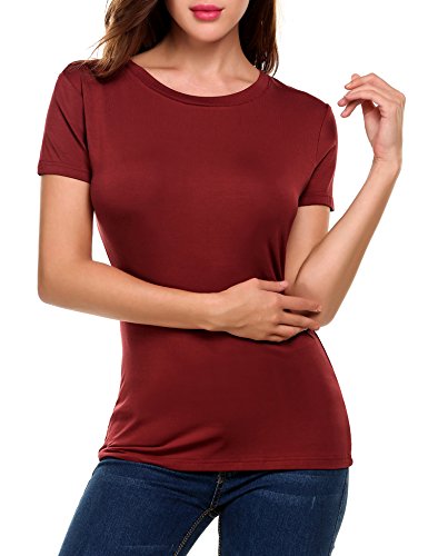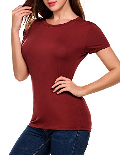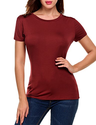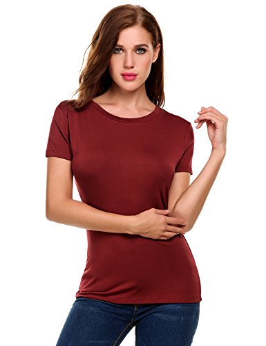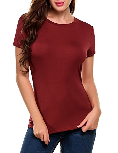 Soteer Women Casual Solid Slim Fitted Tshirt Short Sleeve Basic Top Tee Wine Red M