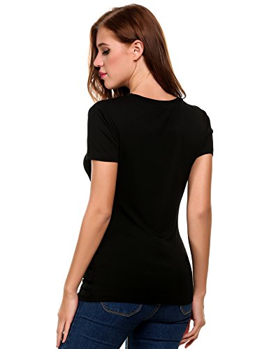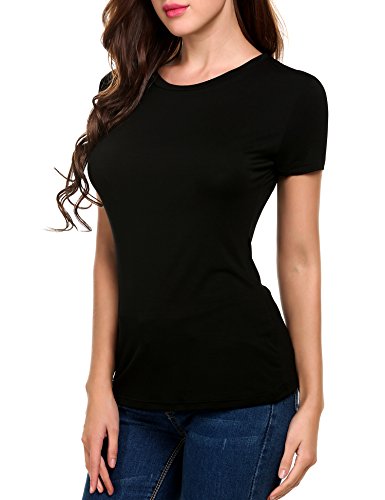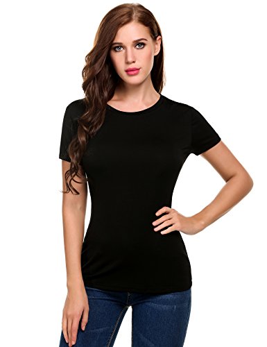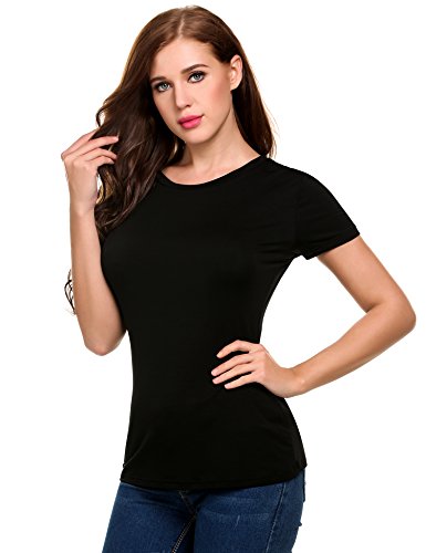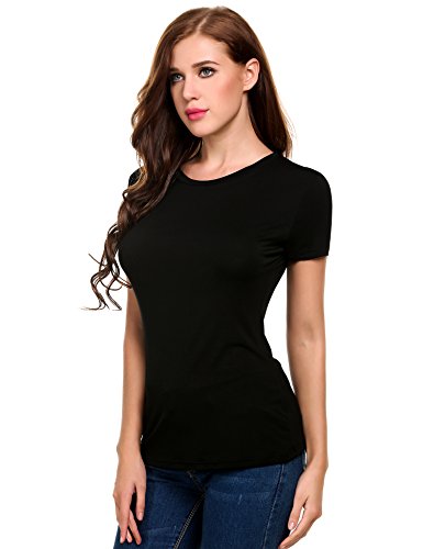 Soteer Women Casual Solid Slim Fitted Tshirt Short Sleeve Basic Top Tee Black M