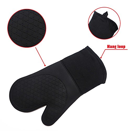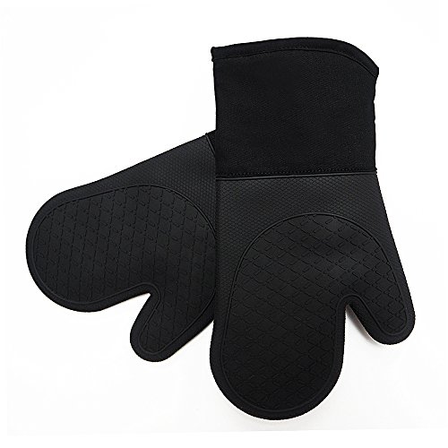 Heat Resistant Kitchen Oven Mitts 500 Degrees With Non-Slip Silicone Set of 2 Oven Gloves for BBQ Cooking set Baking Grilling Barbecue Microwave Machine Washable Women and Man (Black, Full Silicone)