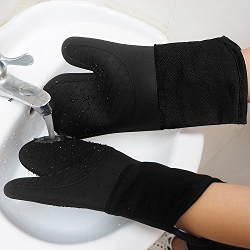 HEAT RESISTANT & WATERPROOF - Heat Resistant oven mitts up to 500 Degrees. Silicone part is waterproof - no hot water burns or steam burns.