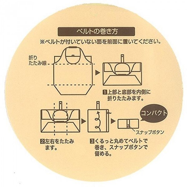 | 折りたたんでクルっと巻いて、コンパクトサイズでかばんに常備しておけます。サブバッグとして手軽に携帯できるので、お出かけ先などで荷物が増えても便利に活用できます。こぼれ落ちを防いで、中身が見えない巾着式! |