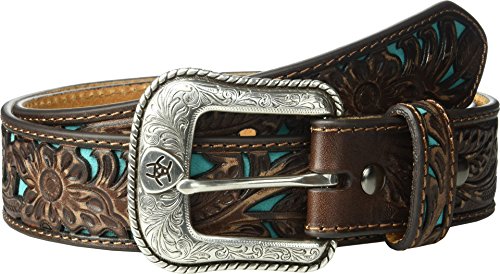 -. Title : Ariat Ariat Sanded Brown Blue Inlay Belt Accessory
