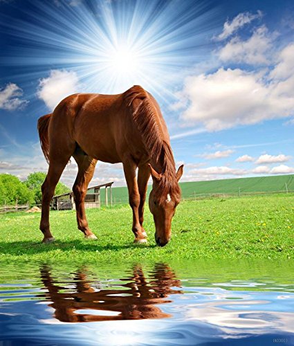 Laeacco Grass Pasture Scenery 3x5ft Vinyl Photography Backdrop 1*1.5m Horse Drinking Water Photo Background Studio Props
