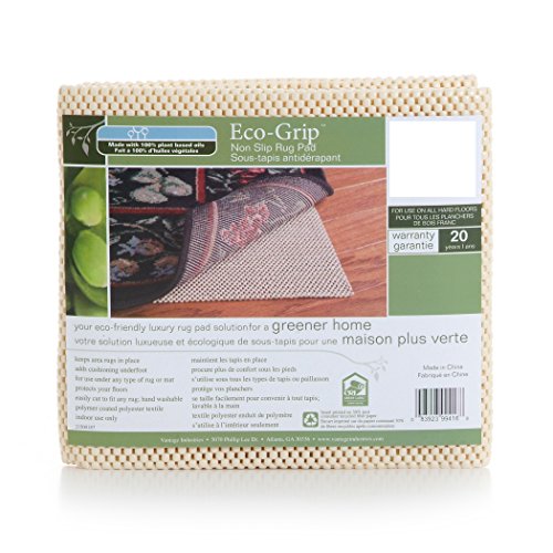 An environmentally friendly way to keep your rugs in place, the Contact Eco-GriP Rug Pad is a luxurious solution for a greener home. It provides maximum cushioning underfoot, may be used under any type of rug or mat, and protects your floors. The pad is made of hand-washable polymer-coated polyester textile and is available in a variety of size options or may be cut to fit your rug. About Contact The largest American manufacturer of high-tech non-slip underlay products, Contact offers a breadth of items and superior levels of product quality, expertise, and customer service that distinguish the company as a leader in its field. Contact's product line includes rug pads, place mats, shelf liners, bath mats, yoga and physical therapy mats, and more. The company even produces a line of rug pads made with natural soy bean oils instead of commonly used petroleum-based oils. Thorough research and development projects have resulted in successful new products from Contact. Non-slip rug pad is conveniently hand-washable. Eco-friendly polymer-coated polyester. Ventilated holes for air circulation and grip. Includes 20-year manufacturer's warranty. Available in a variety of size options.Feature