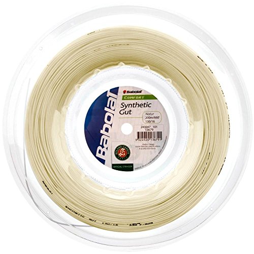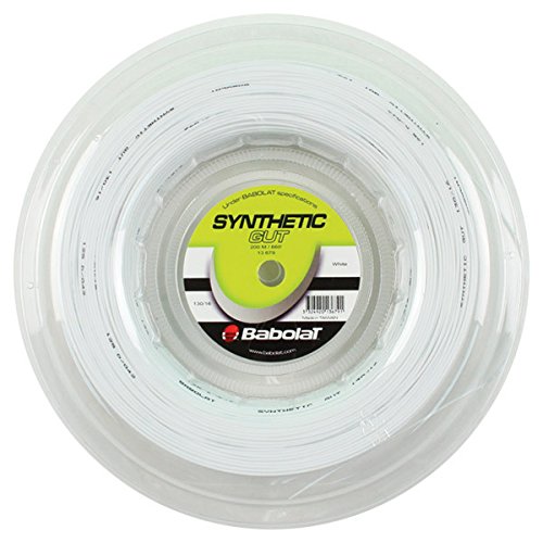 Studio : Babolat Publisher : Babolat Binding : Misc. Product Description An all around performance string, the Babolat Synthetic Gut 16 is constructed by combining a large monofilament central core with a layer of smaller outerwraps. The large core helps to give this string additional durability and solid tension maintenance, while the outerwraps soften the stringbed for better performance and more power. Synthetic Gut 16 is a solid offering that provides a blend of playability and durability at an economic price. This makes a great string for hybrid applications to use in crosses to soften up a stiffer polyester string. Construction: Monofilament polyamide w/ outerwrap Color: White Gauge: 1.30mm Length: 660' / 200m 0