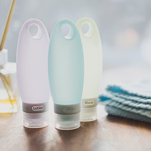 Travel Size Toiletry Squeeze Bottles - TSA-Approved 3.3 oz. Soft Silicone Leakproof Containers for Shampoo, Conditioner, Soap, Facial Scrub, Lotion, Oil, etc. (3-Pack w/ Case)