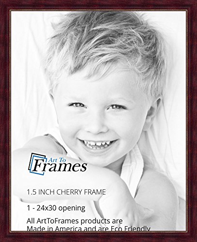 This is a brand new 24x30 picture, photo, diploma, poster frame (meaning a 24 '' x 30 '' or a 30 '' x 24 '' print will fit just right). This 24 x 30 Cherry Stain with Gold Beads frame is made of Wood, measuring 1.5'' wide, and 0.75'' deep, with a .375 '' deep rabbet (the space below the lip to the bottom of the frame). It is carefully made to the highest quality industry standards. This frame comes with Plexi Glass. This Fantastic designer frame is a unique frame that you will not find in most frame shops. The frame is perfect to lighten up your most cherished picture, photo, art gallery, poster, photograph, painting, diploma, artwork, craft project, needle-point or more, yet modest enough to match just about any environment. This Cherry Stain with Gold Beads frame works perfectly with black-and-white , and color pictures or paintings. Makes a nice Christmas gift! Please don't hesitate to browse through our policies and feedback. If you're not sure this is exactly the frame you'd like, feel free to use the search at the top of this page and search ArtToFrames to view our huge selection of wood picture frames, metal picture frames, and premade picture frames. Don't forget to add us to favorites, so you don't have to search for us again next time you need a picture frame!Feature