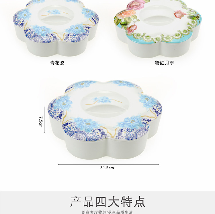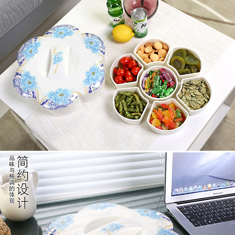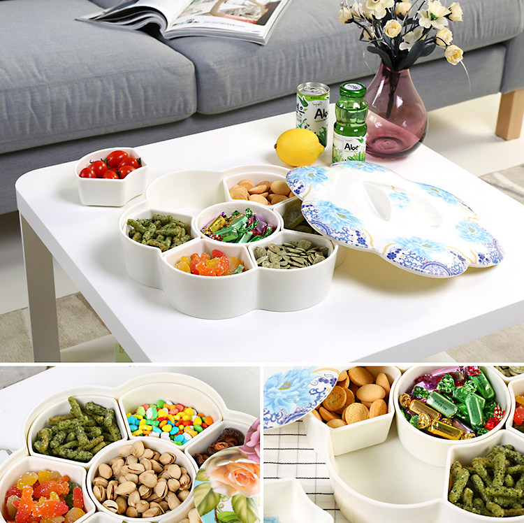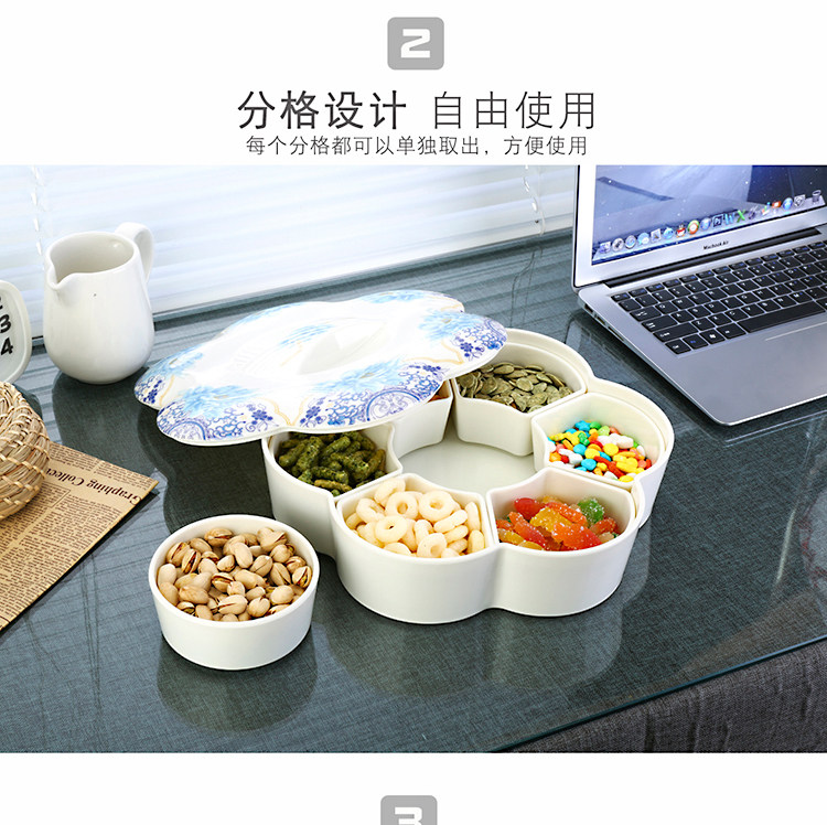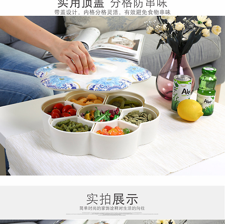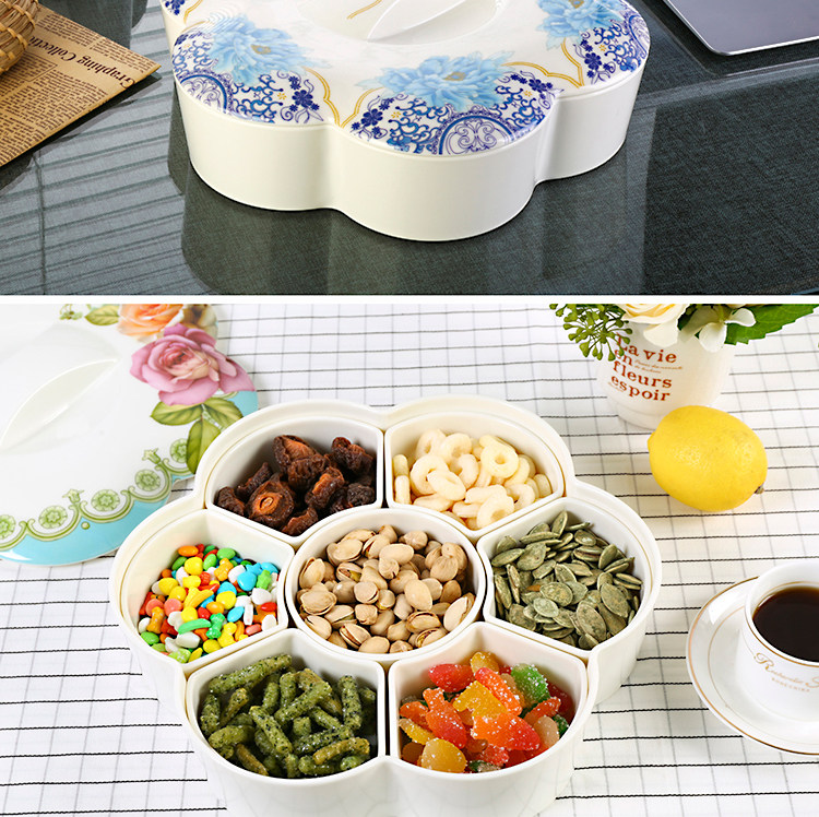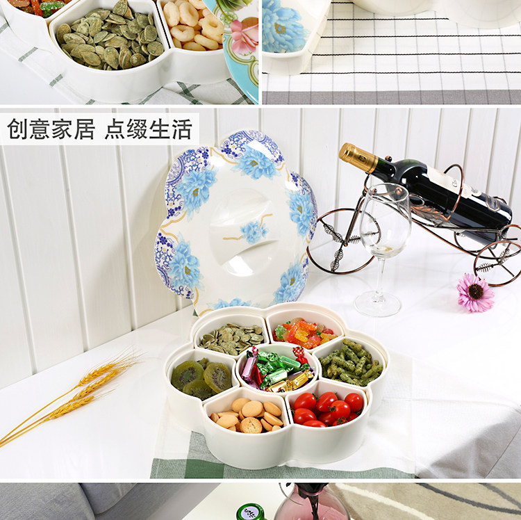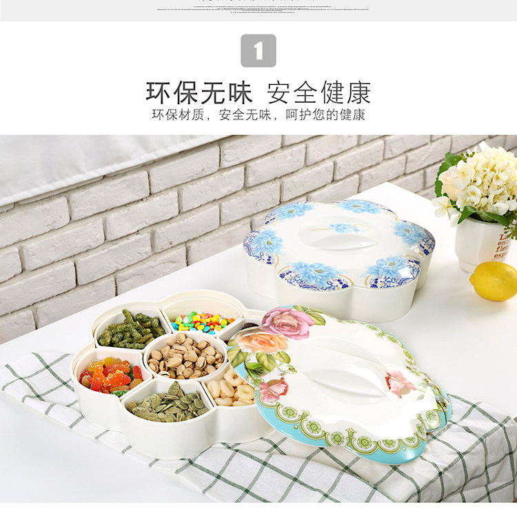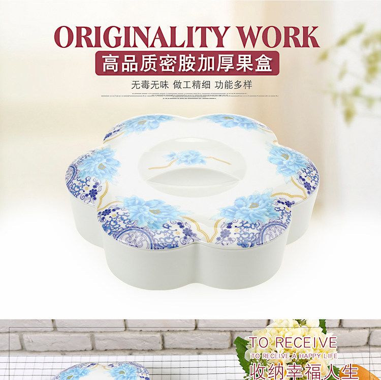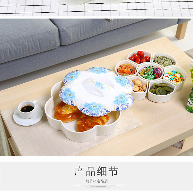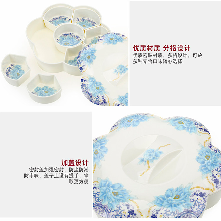密胺中式创意过年结婚糖果盒现代客厅简约分格带盖春节瓜子干果盘