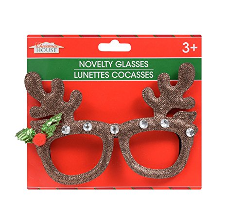 Festive Holiday Novelty Plush Glasses by Christmas House (Reindeer)