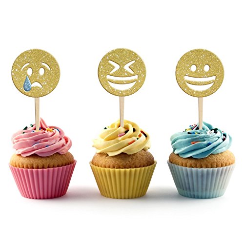 Cup Cake Topper Emoji Laser Cut MDF Decoration Party Decor Set 3 Pc