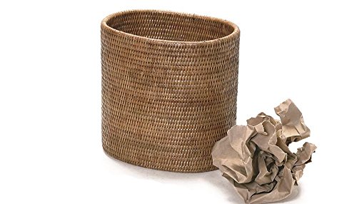 Artifacts Trading Company Rattan Oval Waste Basket, 11" L X 8" W X 11" H