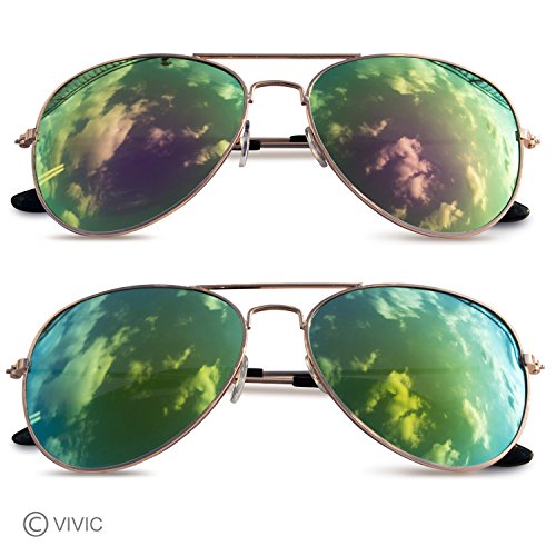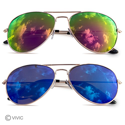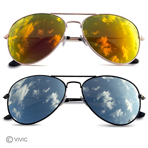 VIVIC Classic Aviator Mirrored Lens Sunglasses, 100% UV protection for your eyes, designed for driving, boating, fishing, golf, joggering, trekking and other outdoor activities.