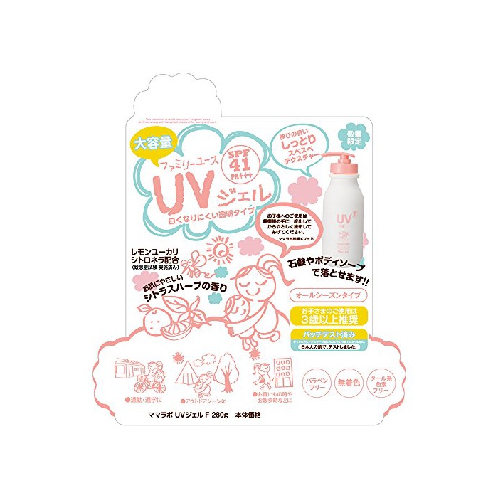 원본상품명: ママラボ UVジェルF 280g SPF41 PA+++ シトラスハ?ブの香り