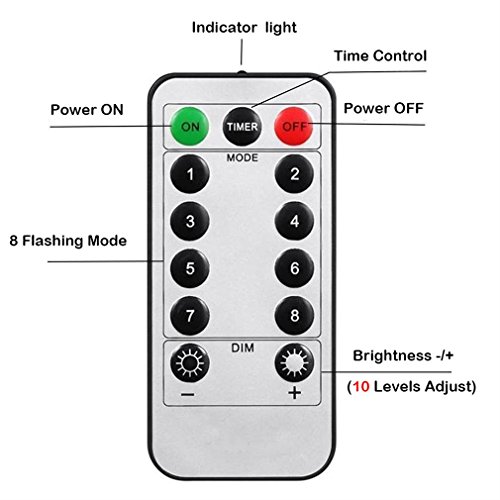 - Wireless Remote Control: 8 Modes light sequences,Auto timer(6 hours on, 18 hours off).The light can be turned ON/OFF by Remote Control.