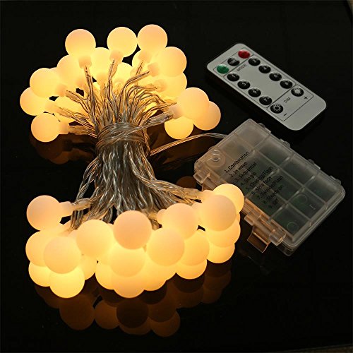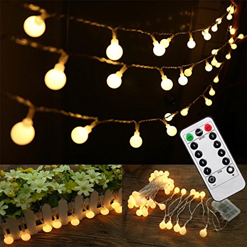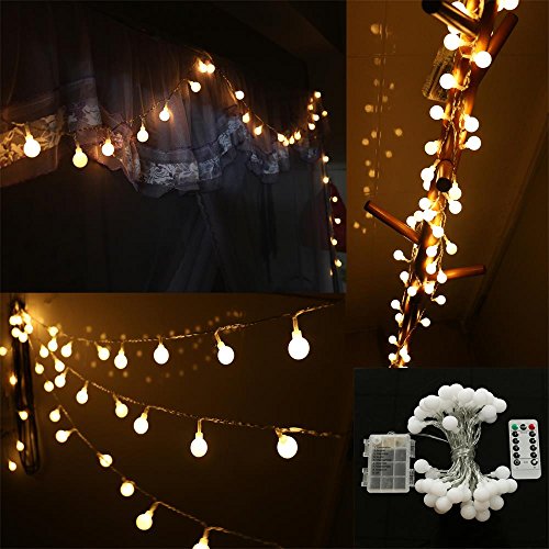 LED Globe String Lights Battery Powered with Remote Control Timer 16.4 Feet 50leds Indoor Outdoor Battery String Lights for Bedroom, Patio, Garden, Room, Party (Warm White)