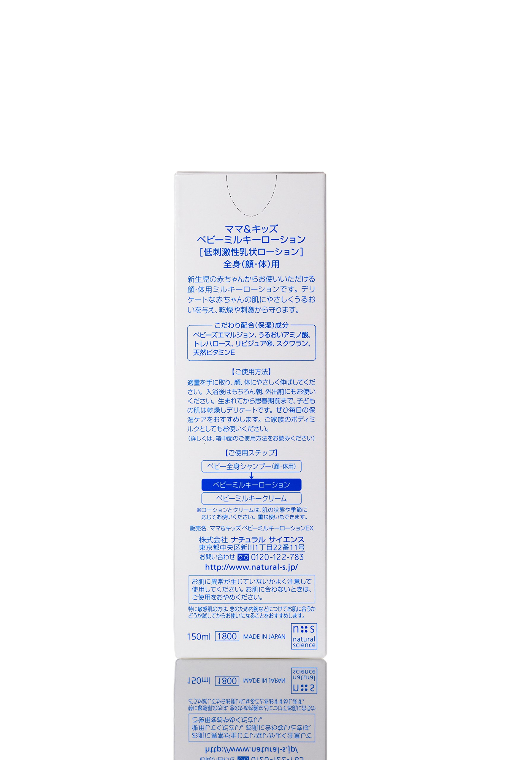 · Eight kinds of moisture amino acids contained in amniotic fluid in mother gives moisture, ingredients close to vernix Babies Emulsion supports skin barrier function.