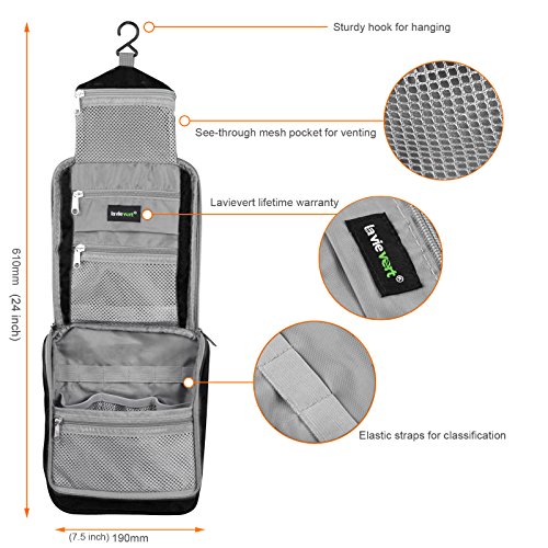 - Title : Lavievert Toiletry Bag / Portable Travel Organizer / Household Storage Pack / Bathroom Makeup or Shaving Kit with Hanging for Business, Vacation, Household - Black