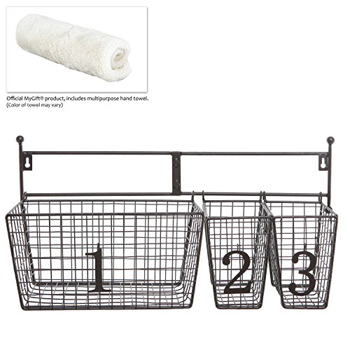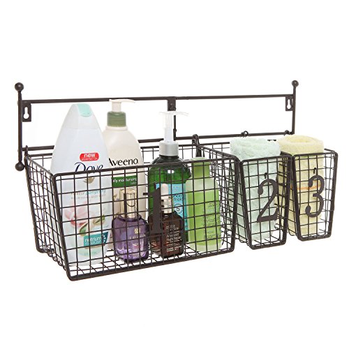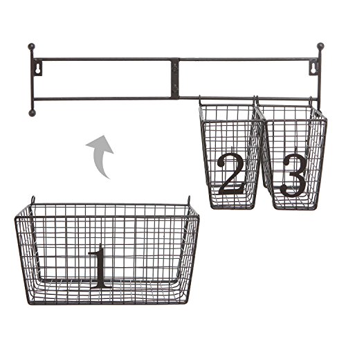 Wall Mounted Black Metal Wire Mesh Numbered Storage Basket Set / Multipurpose Accessory Organizer Rack