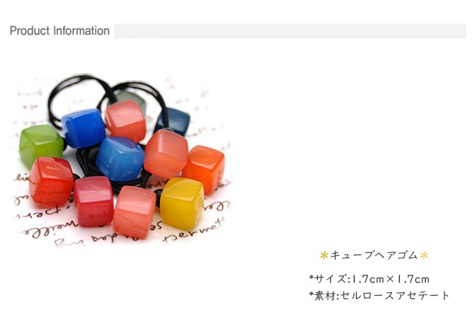 ***2PMテギョン&ウヨン、MissAスジ、T-ARAウンジョン、IU出演の大ヒット韓国ドラマ『ドリームハイ』!ピルスク役を演じたキュートなIU協賛ヘアアクセサリー★カラフルなフルーツカラーのキューブをミックスした、フレッシュ&キュートなヘアゴム♪ヘアアレンジを可愛らしく仕上げます☆