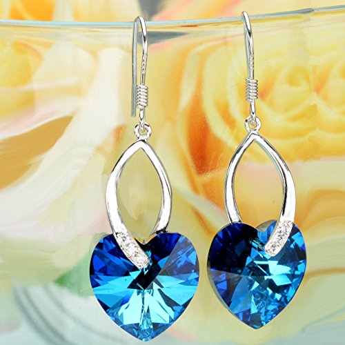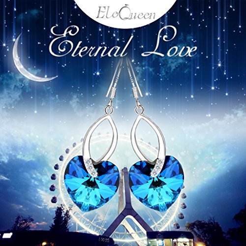 -. Feature : SGS Certified item, EleQueen Original Patented Design, the Highest Quality Standards in Jewelry; Environmental friendly high polished finish Rhodium Plated Genuine 925 Sterling Silver adorned with crystals from Swarovski® and Cubic Zirconia, this jewelry shines with beauty and adds a luxurious look. / CZ Color: Clear, Swarovski® Crystals Color: Bermuda Blue; Length: 1.7in, Width: 0.6in; Each Piece Weight: 2g / A perfect accessory to your outfit or as an approP.R.Iate gift, e.g.for your Lover, girlfriend, fiancee, wife, mother, couple, Valentine or just a friend,etc; Suitable for ball, party, anniversary, graduation, birthday or any special occasions; Click on our Storefront for more stylish jewelries. / The item in picture with ornament is same as the real object without PS. / Free gift wrap with a pouch or box for an impressive gift presentation, including a silver polishing cloth; 30-day Money Back Guarantee.