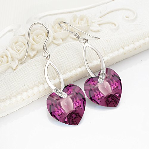 -. Title : EleQueen 925 Sterling Silver CZ Love Heart French Hook Dangle Earrings Adorned with Swarovski® Crystals