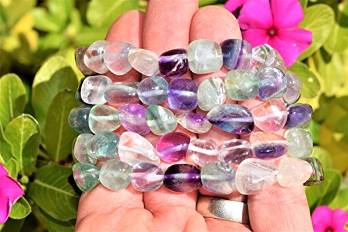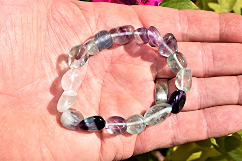 CHARGED Rainbow Fluorite Crystal Bracelet Tumble Polished Stretchy (Increase Clarity & Focus, Remove Energy Blocks & Cleanse Your Aura) HEALING ENERGY REIKI by ZENERGY GEMS