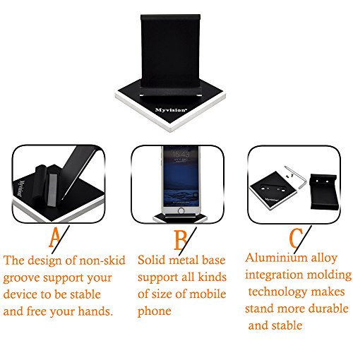 Phone Holder Android Cellphone Tablet Stand Myvision Solid Portable Universal Aluminum Desktop Smart Mobile Cell Phone Apple iPhone ipad iPad Mini iPod Touch Desk Office Kitchen Home Travel, Black