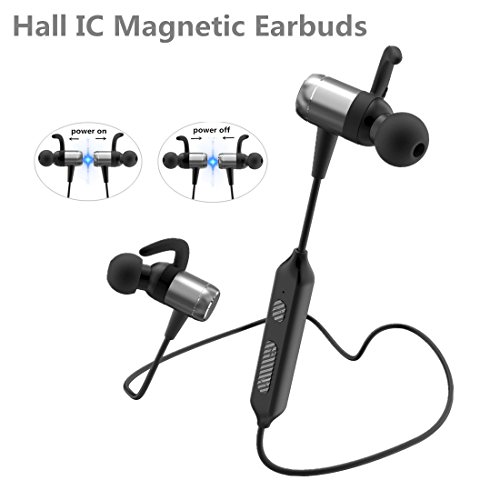 Practical Hall IC Magnetic earbuds: Hall IC magnetic earbuds enabling separate to power-on and attach to power-off. Attaching two headphones together with strong built-in magnets and wear like a necklace around your neck when not in use, easy to carry around and never worry about the ear buds falling off.