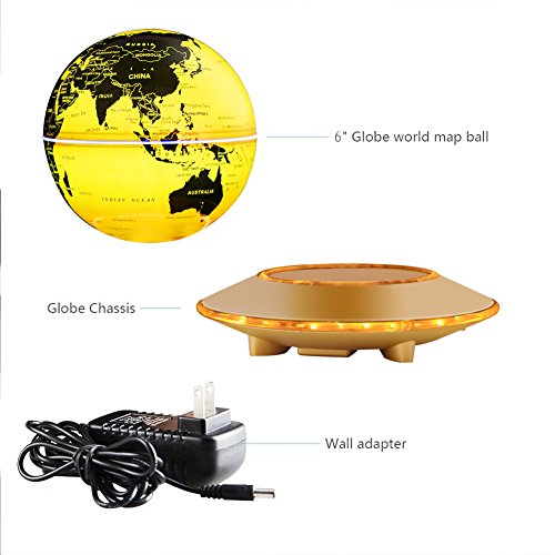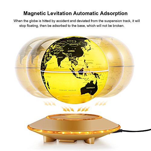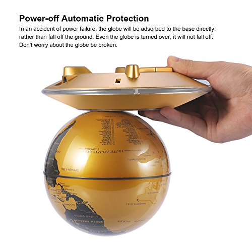 Specifications: Product Name: Magnetic levitation floating globe Material: ABS plastic, Acrylic Color: Blue, Gold Global Diameter: 140mm Base Diameter: 180mm Input Range: 100V-240V Output Power: 12V 1500mA Floating distance: 12mm-5mm Package Weight: 1.5kg