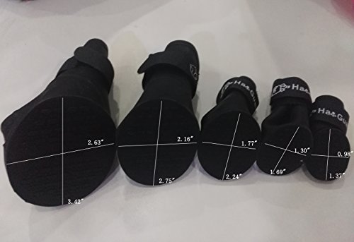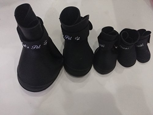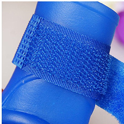 -. Feature : The shoes use PVC environmental protection material, non-toxic, flexible and soft which can be arbitrarily curved, not hurt grinding pet foot pain. / Rainproof, waterproof, anti-skid, move freely,and it will keep your pup's paws clean, dry, and safe with protection from ice and snow,rain and so on. / Easy and comfortable to wear with the magic tape,and it is very light ,which it is more convenient for your dog. / Size: 1#: 3.5 x 2.5cm / 1.37 x 0.98" 2#: 4.3 x 3.3cm / 1.69 x 1.30" 3#: 5.6 x 4.4cm / 2.20 x 1.73" 4#: 7.0 x 5.5cm / 2.75 x 2.16" 5#: 8.7 x 6.7cm / 3.42 x 2.63"( Note: please measure the paw's size of your dog,and the small is very small.) / IMPORTANT: Please measure your pets feet according to the method posted in the picture before ordering: 1) Place the paw on a piece of paper and press down on the top, mimicking how the paw spreads when the dog is walking;2) Mark the left and right sides on the paper and measure the distance between the marks;3) Measure the paw Maximum length and width;4) Choose the shoes with size a little larger than paw size (around 1cm larger).