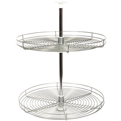 -. Feature : Shelves rotate independently on a 1 inch chrome telescoping post. / Full round wire shelving with a 28 inch diameter. / Round shelf design is ideal for fitting in most any cabinet space. / Shelf mounting system designed to allow unlimited shelf positions along the post. / Post height is adjustable for cabinets measuring 25 1/2 inch to 31 1/2 inch tall.