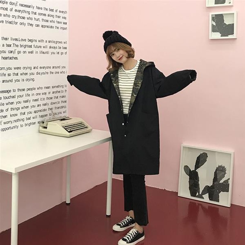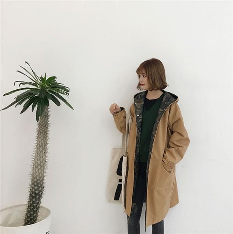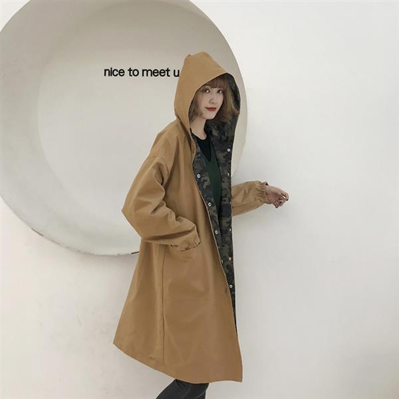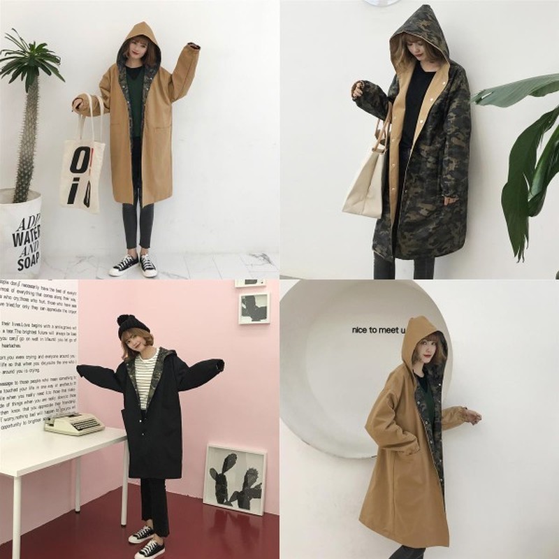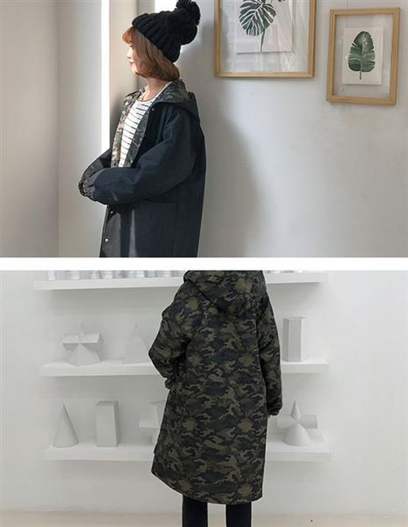♢ポイント♢ 迷彩柄と無地のリバーシブルのお洒落なフード付きロングジャケットです。 一枚あるとコーディネートの幅も広がる事間違いなし♪