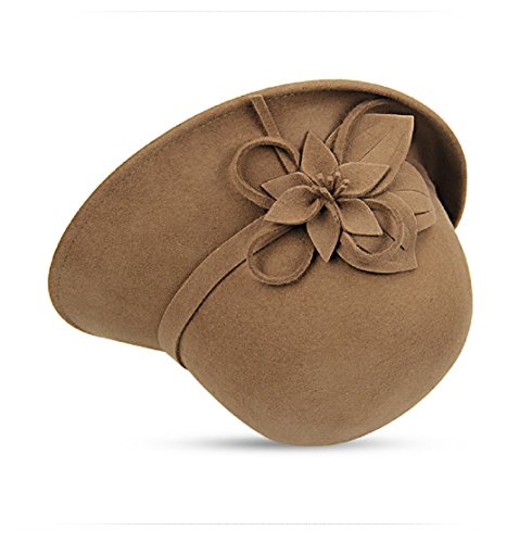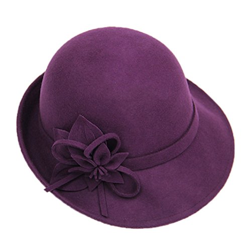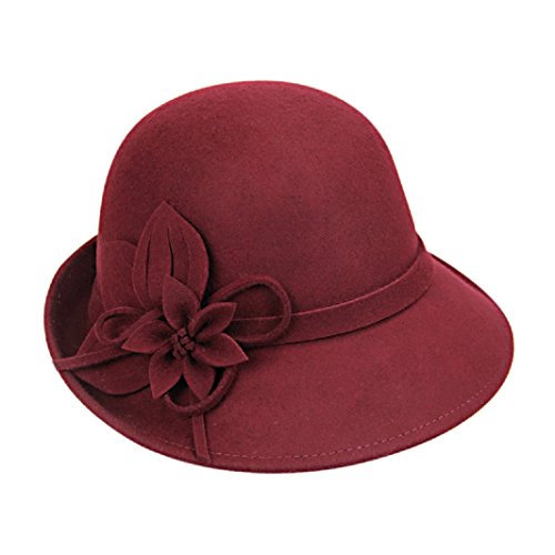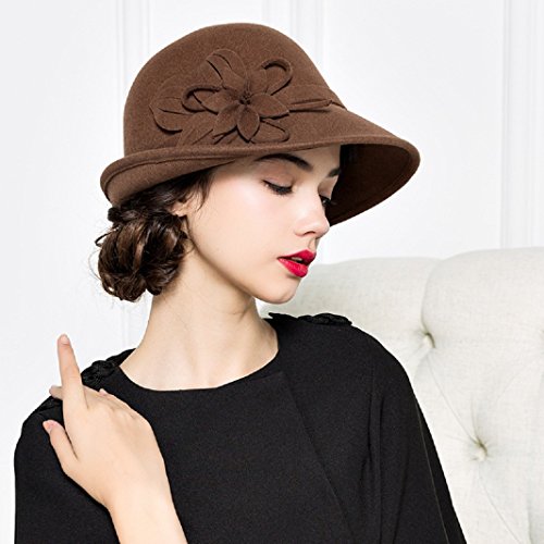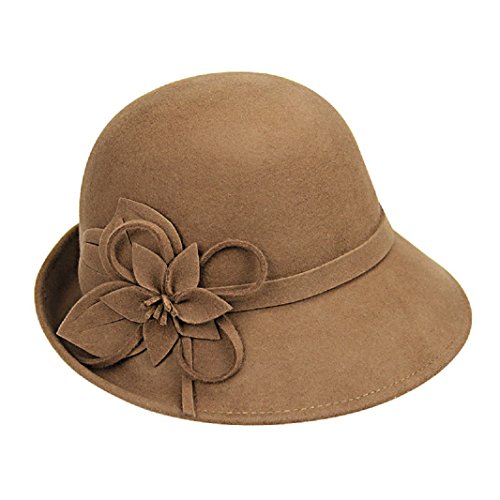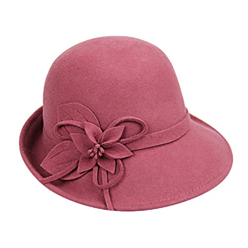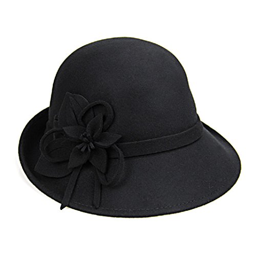 (FUNNY365)/Accessories/Hats/DIRECT FROM USA/FUNNY365 Womens Flower Wool Cloche Bucket Hat Dress Winter Cap Fashion