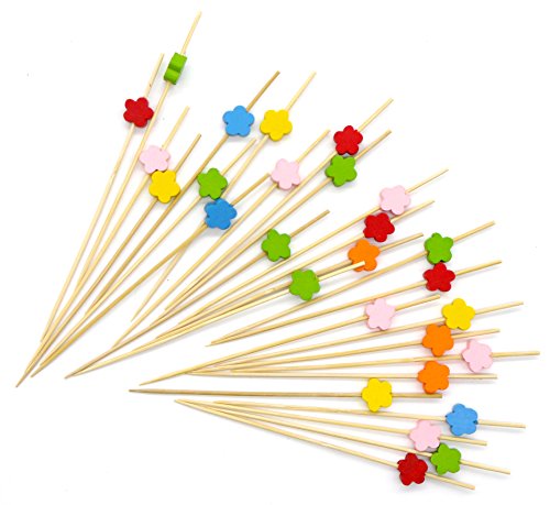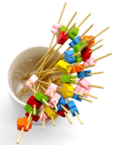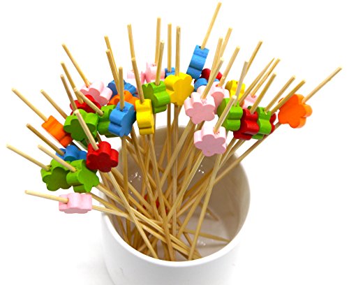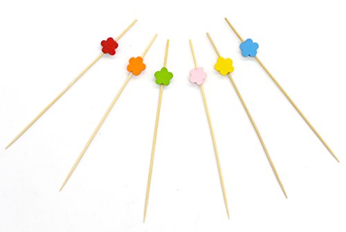 PuTwo Handmade Cocktail Picks 100 Counts Flower Shape Cocktail Sticks Frilled Toothpicks Party Supplies - Multicolor