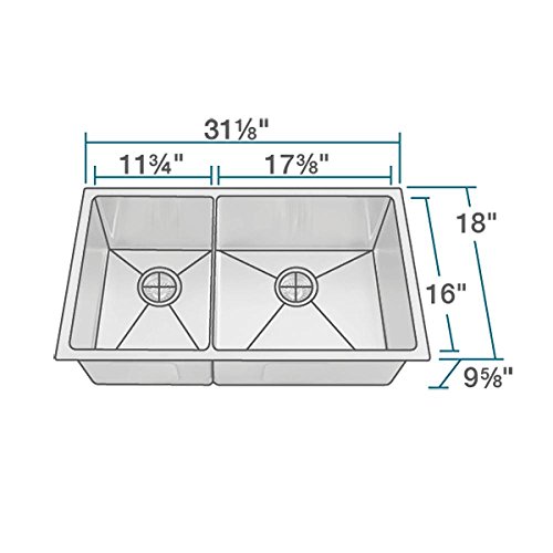CONTEMPORARY STYLING -- Subtle ¾” radius corners provide extra sink space and a soft appearance in this broad, double-offset-bowl made of shimmering stainless steel