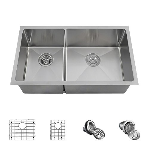 3160R Double Bowl 3/4" Stainless Steel Sink, Two Grids, and Standard and Basket Strainers