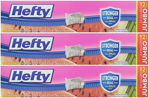 Hefty Slider 2.5 Gallon Jumbo Storage Bags, 12 Count (Pack of 3) 36 Bags Total