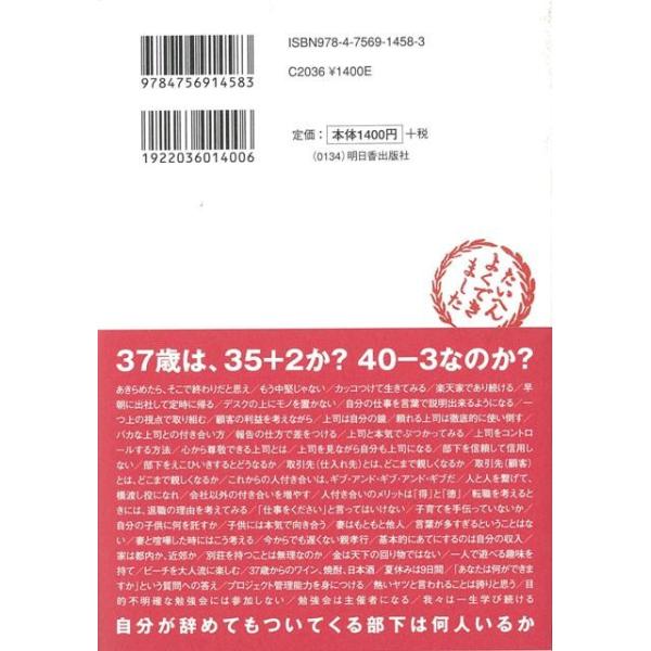 【商品基本情報】 商品名称:37歳からのルール-あたりまえだけどなかなかできない 著者/出版社:大木 豊成/大木 豊成 初版発行日:2011/05/10 サイズ:B6判 ページ数:236 ISBN/JAN:9784756914583/4528189419179
