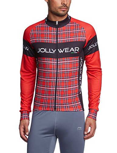 Jolly Wear Tweed Cycling Long Sleeve Jersey, Tartan Red, Medium