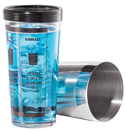 -. Feature : Professional grade / Classic design / Sizes and recipes all down the glass section / Stainless steel / Professional mixing glass and cocktail shaker set / Mixer made of glass and features popular drink recipes P.R.Inted around the outside / Shaker made of stainless steel / 15-Ounce capacity / Hand wash