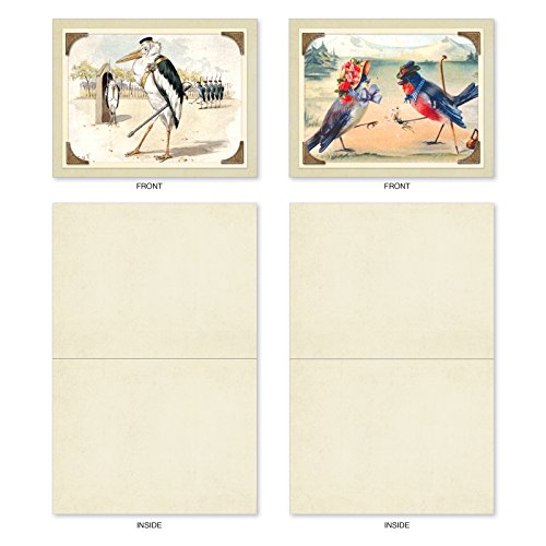M2344OCB Sweet Tweets: 10 Assorted Blank All-Occasion Note Cards Featuring Vintage Birds and Owls Enjoying Scenes from Everyday Life, w/White Envelopes.