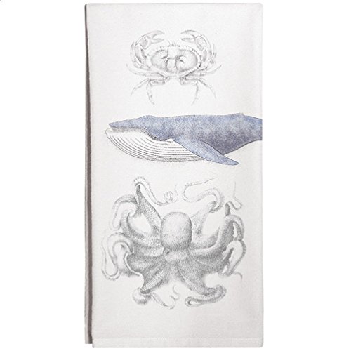 Montgomery Street Blue Whale, Crab and Octopus Cotton Flour Sack Dish Towel