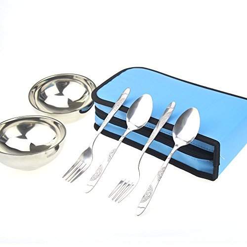 Agile-shop Portable Camping Tableware Dinnerware with Case Fork Spoon Bowl Travel Camping Utensil for School,Office,Travel,Picnics