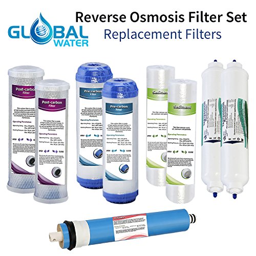-. Feature : Universal Global Water Standard 10' Replacement Filter Set, fits standard 5 Stage RO System Housings, Compatible To Most RO Systems- 50 GPD Membrane / High Quality TFC RO Membrane Tested And Qualified That Provides Up To 99% Reduction Rate Of Bacteria & Chemicals. / Total Of 5 Filters That Fits 10-Inch standard filter housings, compatible to most RO systems. / Superior Quality filters Guaranteed To Improve The Taste Of Drinking Water / High Quality Inline filter cartridge quick connect- (polishing filters)
