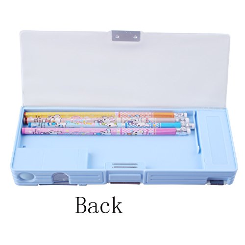 Kids Boy girl Student Blue Multifunctional Plastic Pencil Box Case With Pencils and Pencil Sharpener and Eraser School Stationery Gift Set (Light Blue Color)